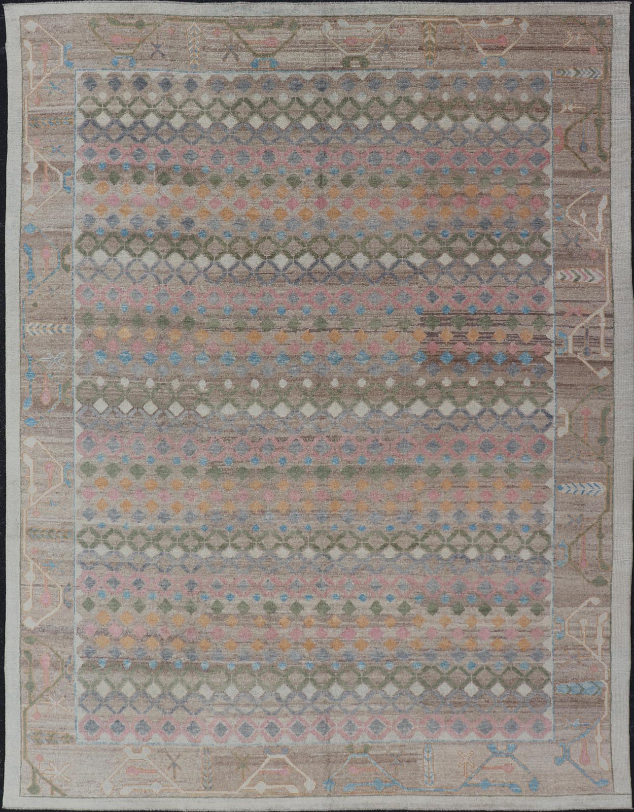 Turkish Oushak Rug with Neutral Color Palette and All-Over Flower Design, rug en-165662, country of origin / type: Turkey / Oushak